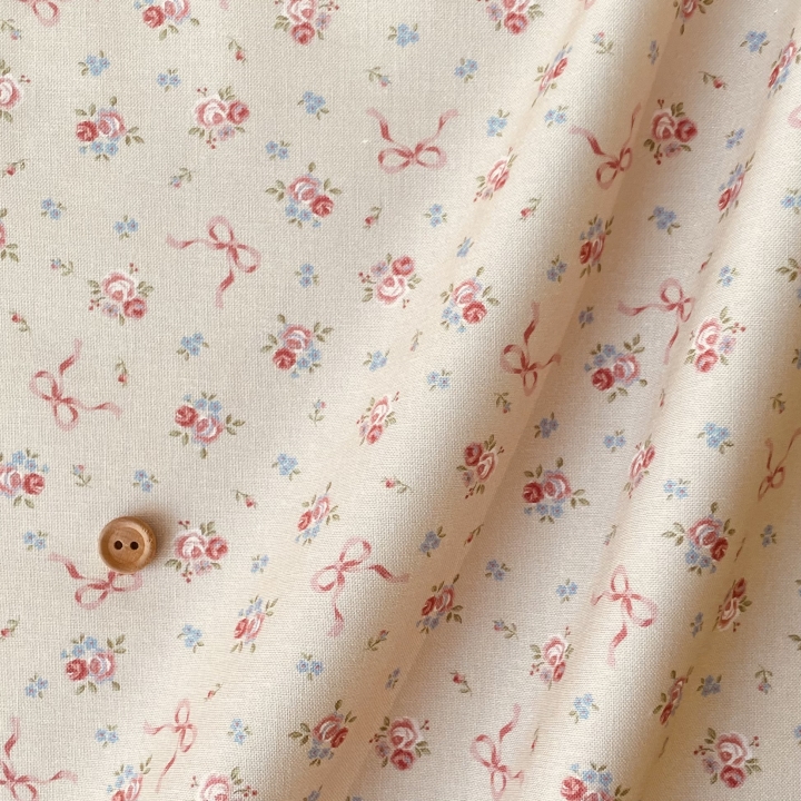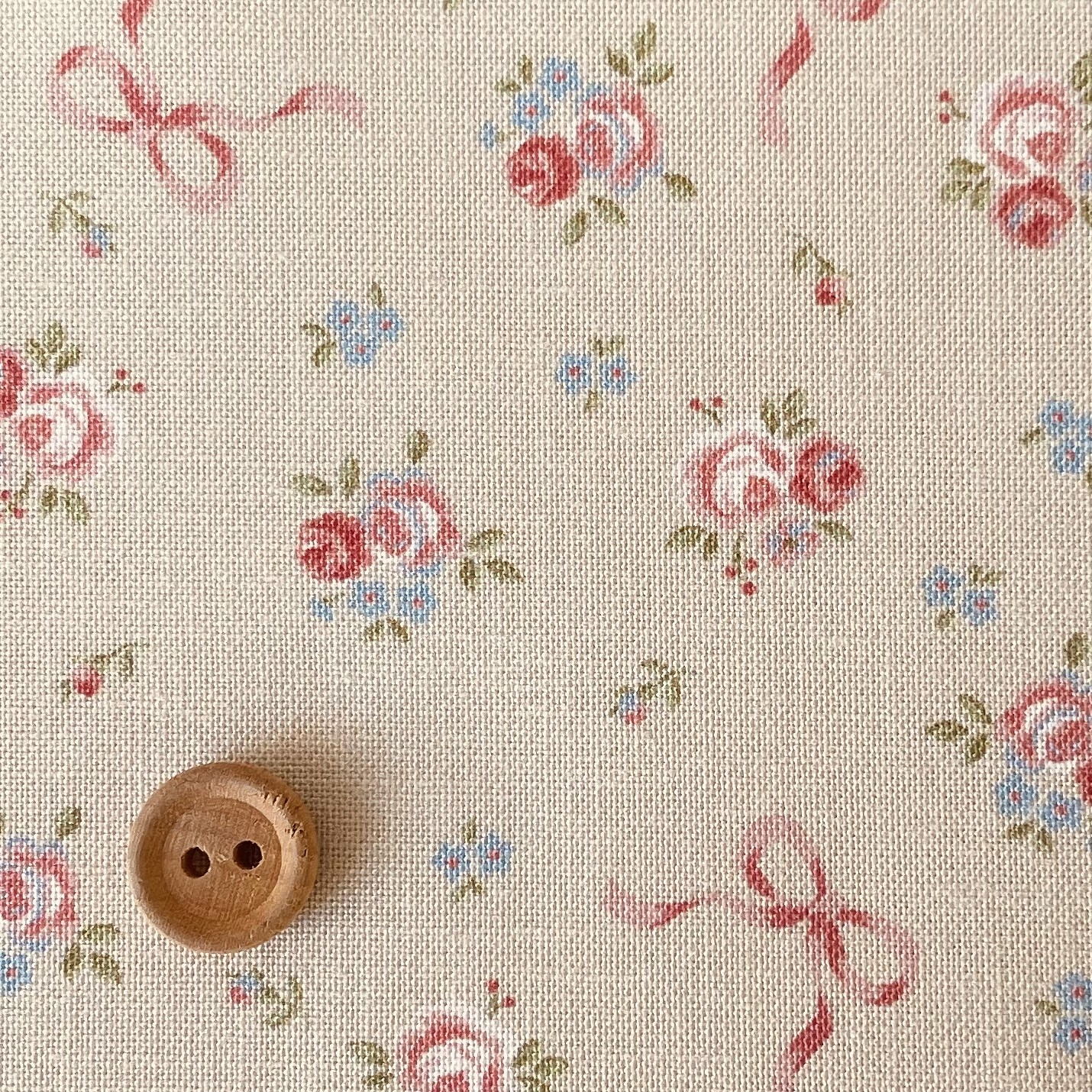 前回の発表の"chocolate box collection"のソーイングモチーフ柄は大変ご好評いただき完売となりましたが、今回使いやすく少し小さくリサイズしてスイートな色で再登場します! 綿100% 生地幅 約112cm 希望小売価格 ¥1,400/m(税込¥1,540/m) *ボタンの直径は1.2cmです