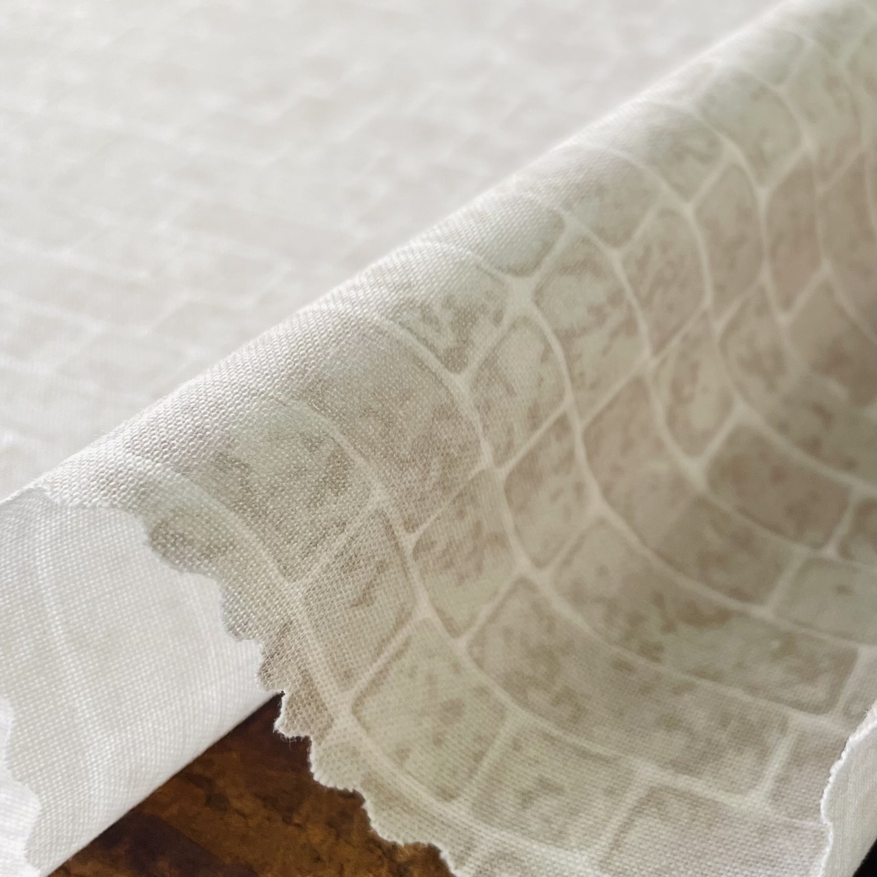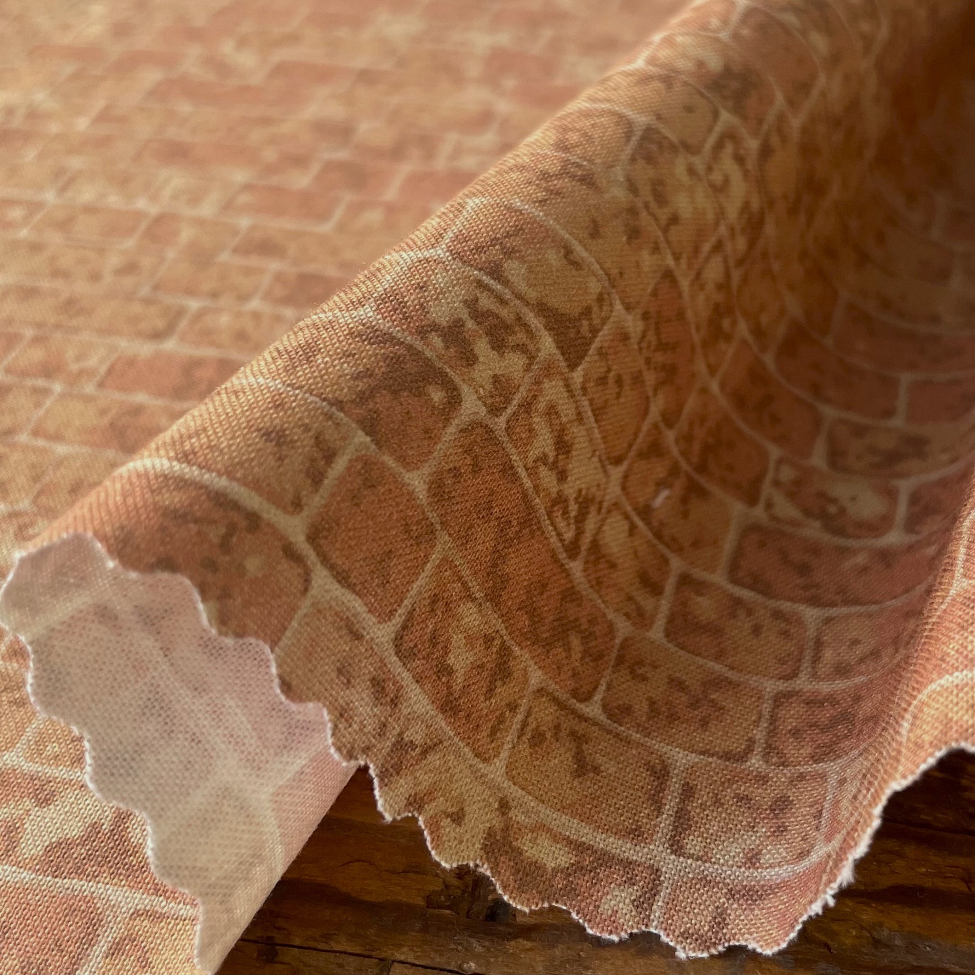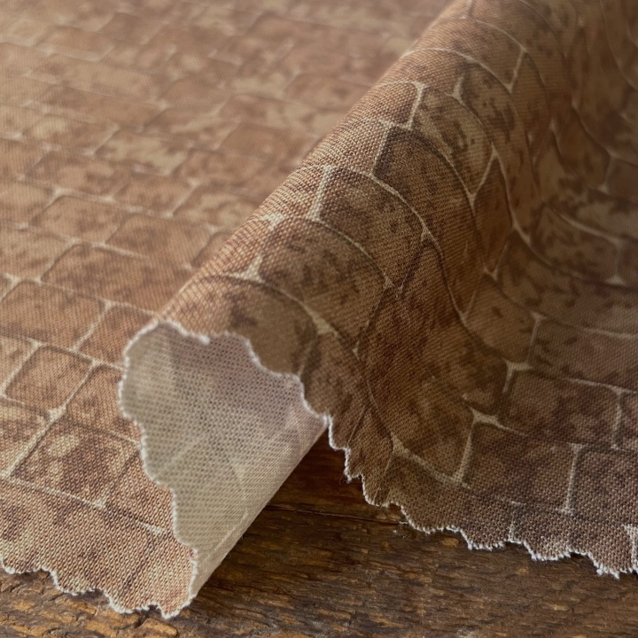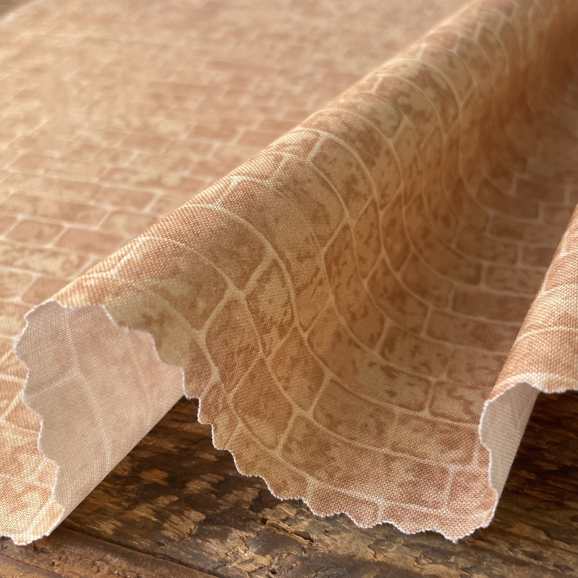 feedsackコレクターのKa’sさんのコレクションから柄を復刻させましたが、今回は選りすぐりの feedsack collectionをKa’sさんがオクタゴンのパターンでつないだものをそのままプリントしました。1辺約22mmのオクタゴンのパターンです。