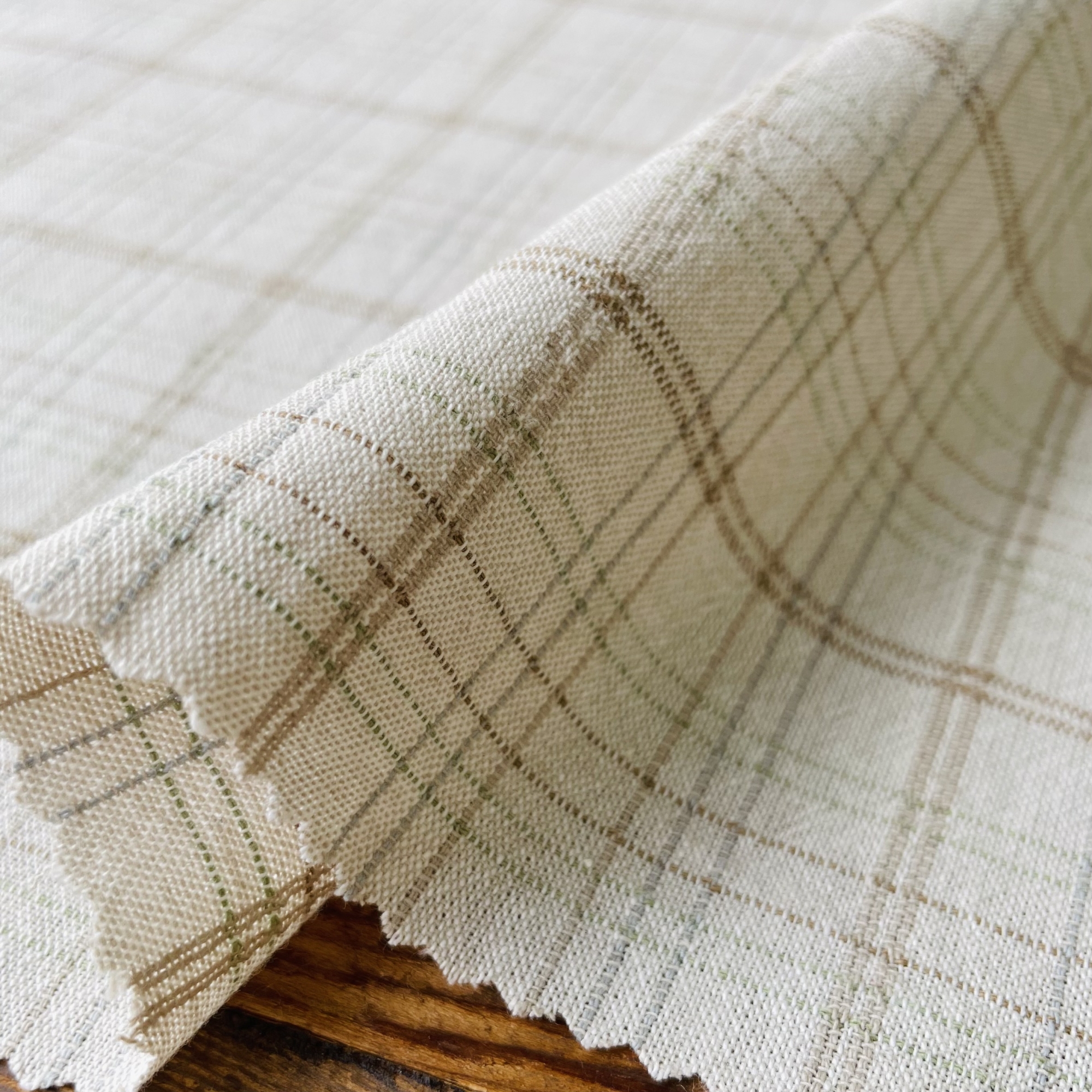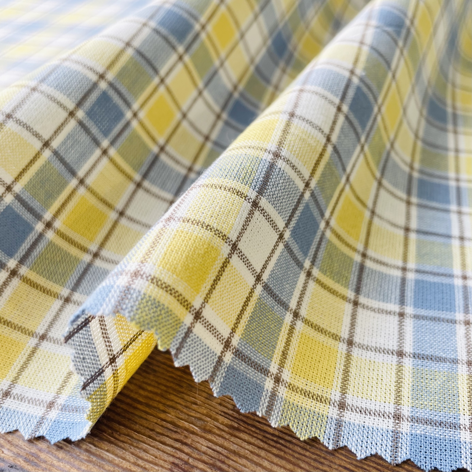 プレーンなチェックにポップな色のステッチがアクセントのチェックです。ステッチの両脇にはサブの色を使っていますがこちらは目立たず、柄を引き立てています。バイヤスに使うと差し色が際立ちます。