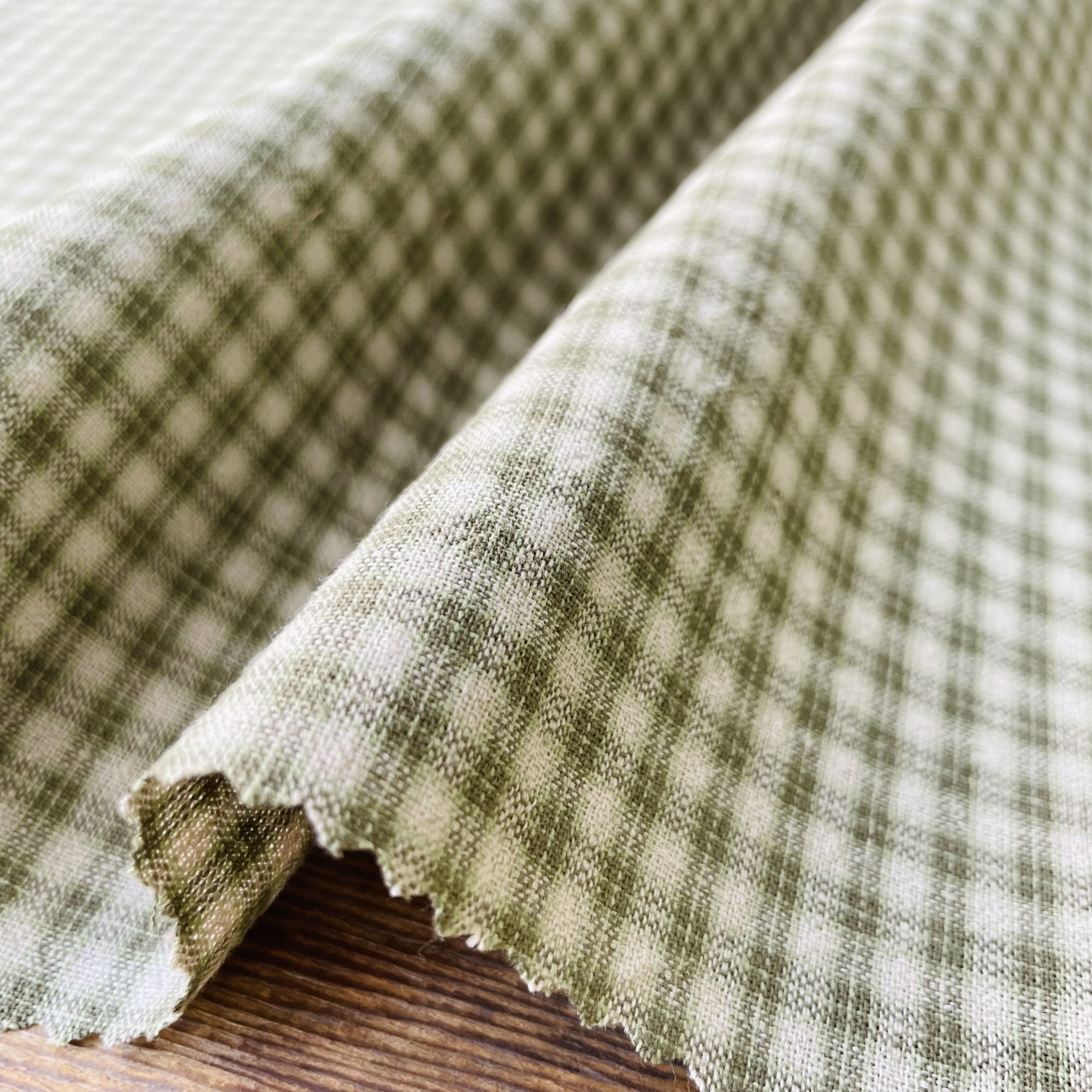 使いやすいプレーンなギンガムチェックですが、片側に引き揃えの少し濃いめのラインを入れることで陰影ができて一味違う顔になりました。